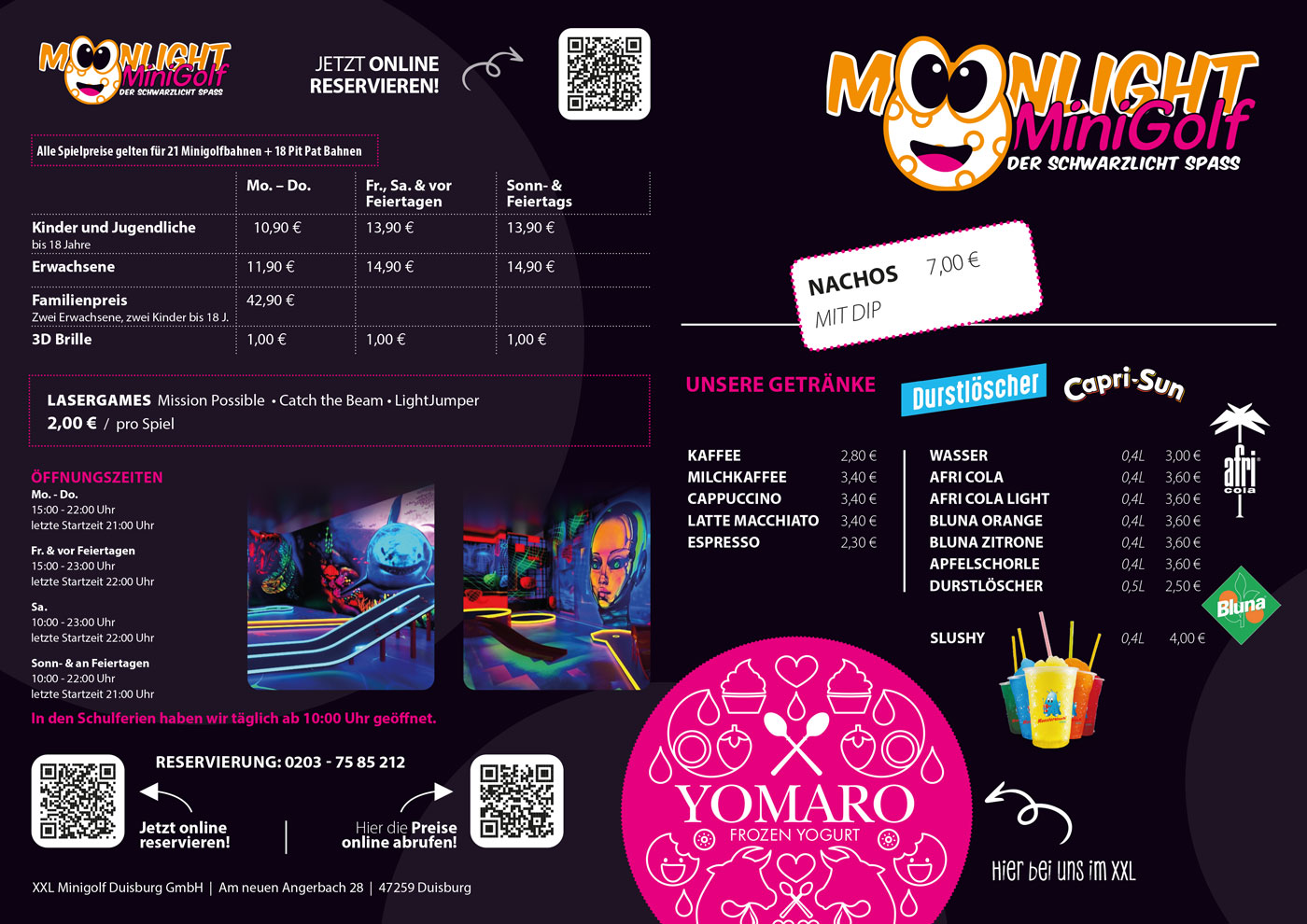 Alle Spielpreise gelten für 21 Minigolfbahnen + 18 Pit Pat Bahnen